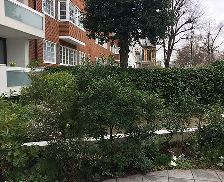 The front garden is dominated by a Sycamore (Acer pseudoplatanus) a holly tree (Ilex Aquifolium) and three Cypress trees (Cupressus sempervirens).