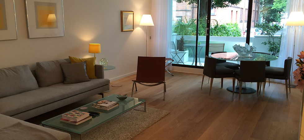 The two garden apartments also have large terraces overlooking the courtyard garden at the rear.